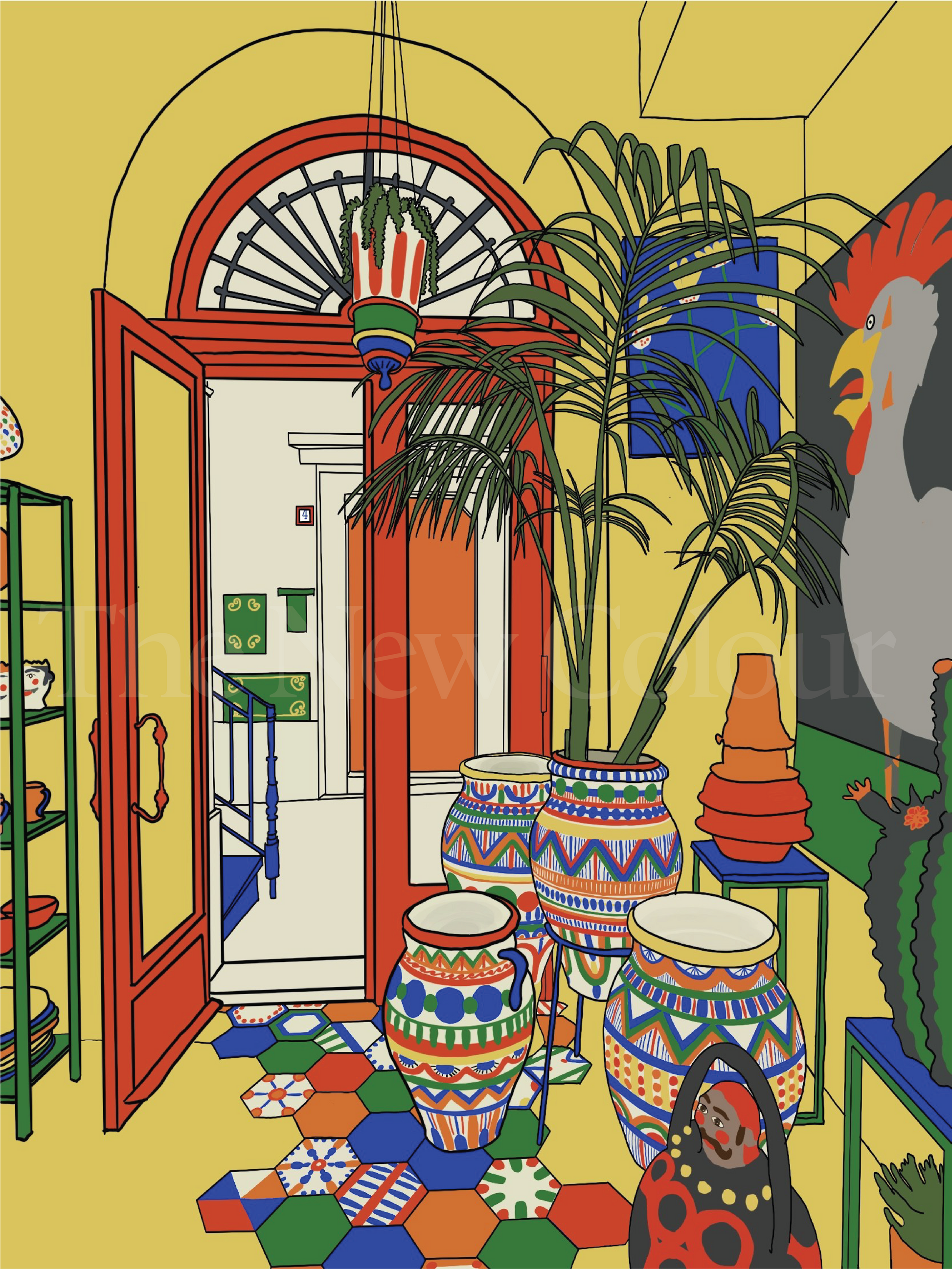 Created in-house by founder Heather, this beloved print captures a hidden gem—a charming ceramics shop nestled in a Sicilian street. The vibrant colours reflect the lively energy of Taormina's bustling streets. Printed on premium 240gsm paper.