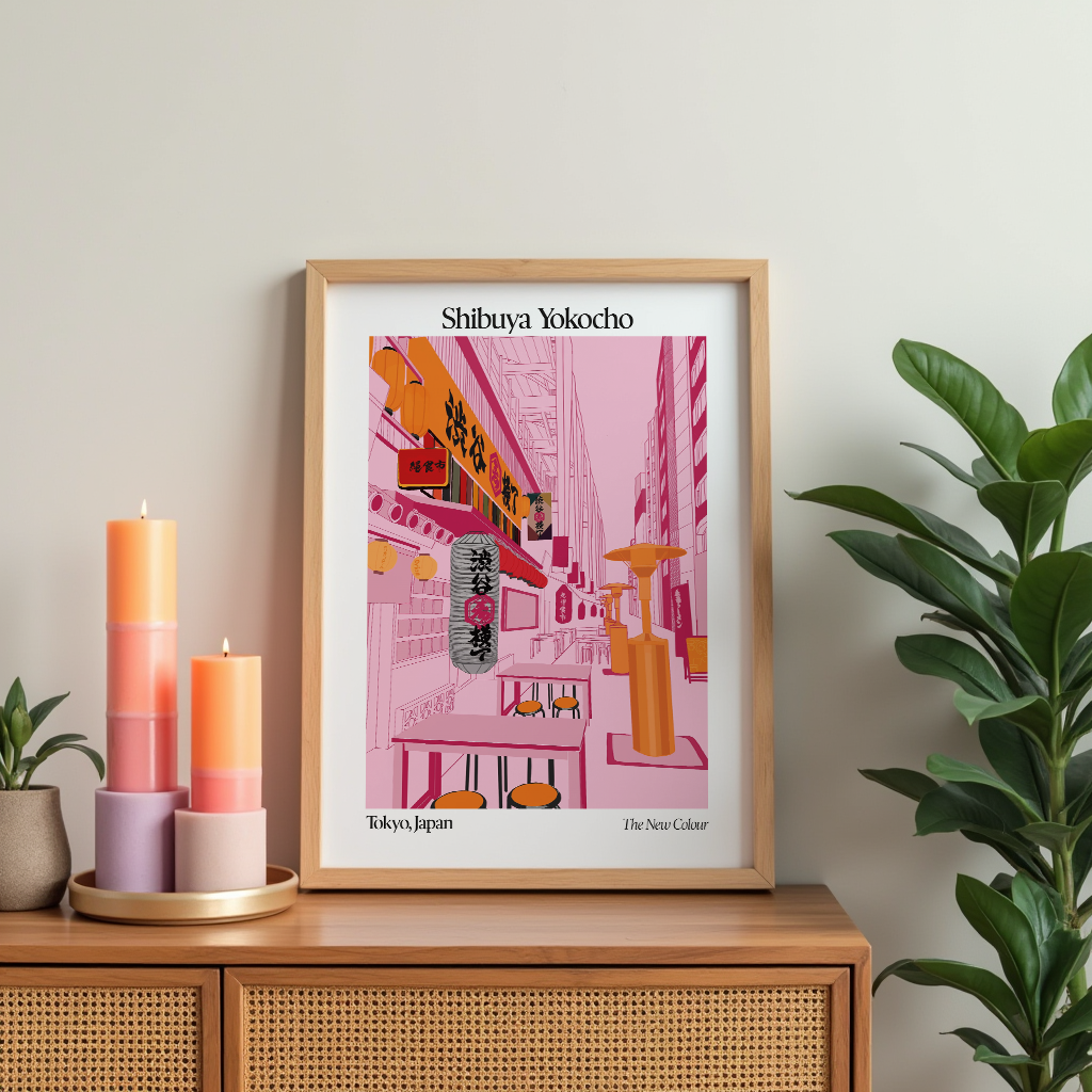 A lively and playful design, created in-house by Founder Heather, celebrating the vibrant hues of Tokyo. Bold, dynamic tones are used to craft reflections, shadows, and make a statement on your wall. Printed on premium 240gsm paper